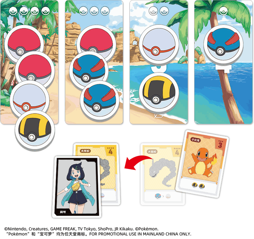 《来啦!宝可梦》将延续《来包洋芋片》高度紧凑、全程欢乐的基础属性,并基于动画《宝可梦地平线》为背景,为游戏带来丰富的宝可梦元素,同时在游戏玩法上也进行了大幅“进化”:在游戏中,2-5名玩家将扮演莉可、罗伊、艾梅吉欧等《宝可梦地平线》中登场的角色,通过捕捉在周围聚集的各种宝可梦来获得分数,比拼谁是这轮游戏中得分最高的宝可梦训练家。然而,每回合可以成功捕捉的宝可梦只有一只,玩家需要根据场上精灵球标记的类型和数量,按照相应条件慎重选择可以捕捉的宝可梦,同时还要关注其他角色的进度,展开一场充满着运气与策略的欢乐对决!