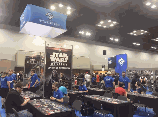 Asmodee 作为世界最为著名的桌面游戏品牌之一,自然也去参加了本次桌游盛宴。在GENCON现场有超过40个演示桌,57场比赛,数场签名会和新品试玩活动。