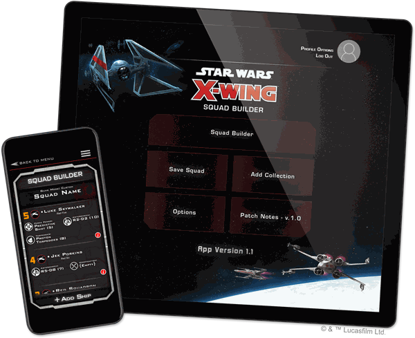 随着《X翼战机》第二版游戏一起推出的还有《X翼战机》舰队构筑助手APP,通过该APP,你可以更加方便的管理并控制你的战机舰队。此APP将实现更多第一版中的功能,包括升级卡的点数费用和升级插槽管理将通过APP直接控制,通过更直观的数据跟踪,为玩家省去了不必要的麻烦。更为重要的一点是,APP自带的舰队构筑规则,使得玩家在构筑舰队时不会与规则不符,从而影响游戏及比赛的流畅度。